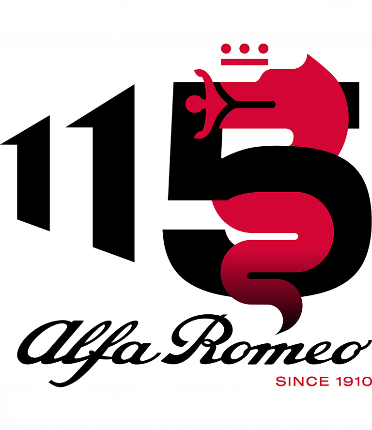 Logo ke 115. výročí oslavuje historický odkaz značky Alfa Romeo v moderním pojetí, které propojuje minulost, přítomnost i budoucnost. Šípovité číslo „115“ symbolizuje pohyb vpřed a touhu po inovacích, tedy hodnoty hluboce zakořeněné v DNA značky. Hlavním motivem kompozice je číslice „5“, kterou obepíná heraldický had Biscione, historický a ikonický znak Alfa Romeo, jenž zde slouží jako vizuální i symbolický prvek, dodávající celku hloubku a prostorovost. Výrazný kontrast sytě černých číslic a ikonické červené „Alfa“ připomíná jedinečnou identitu značky, utvářenou vášní, sportovním duchem a italským stylem. Samotný Biscione a struktura loga zároveň odkazují na dřívější výroční loga značky, tentokrát ovšem reinterpretovaná v minimalistickém a moderním duchu.